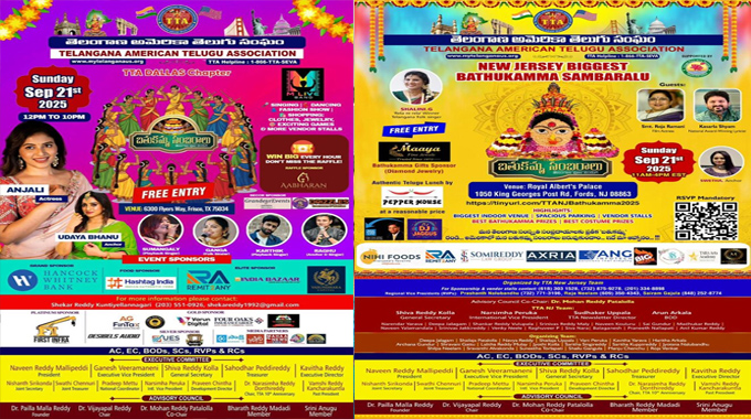 తెలంగాణ అమెరికన్ తెలుగు అసోసియేషన్ (TTA) తమ సంప్రదాయ కార్యక్రమం అయిన బతుకమ్మ/దసరా వేడుకలను ఈ ఏడాది కూడా ఘనంగా నిర్వహించేందుకు సిద్ధమవుతోంది. టీటీఏ (TTA) అధ్యక్షులు నవీన్ రెడ్డి మల్లిపెద్ది నాయకత్వంలో ఈ సంవత్సరం వేడుకలను గతంలో కంటే మరింత వైభవంగా నిర్వహించడానికి ఏర్పా్ట్లు జరుగుతున్నాయని టీటీఏ తెలిపింది. అమెరికాలో తెలుగువారి సంస్కృతి, సంప్రదాయాలను ఈ వేడుకలు ప్రతిబింబిస్తాయని పేర్కొంది. అదే సమయంలో నేషనల్ బతుకమ్మ అడ్వైజర్గా నియమితురాలైన ఎగ్జిక్యూటివ్ డైరెక్టర్ కవితా రెడ్డికి టీటీఏ అభినందనలు తెలియజేసింది.